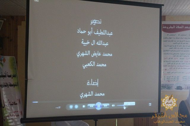 كذلك قام أمين مركز مصادر التعلم الأستاذ/ فهد الحسيني بالسحب على جوائز سؤال الاسبوع والتي تقام أسبوعياً على موقع المدرسة بمشاركة الطلاب والمعلمين تلاه تكريم الطلاب الفائزين في إعداد المسابقة الثقافية عن طريق البوربوينت وفي نهاية الحفل قدم رئيس المركز كلمة توجيهية لأبنائه الطلاب حثهم فيها على طلب العلم والحذر من التكنولوجيا الحديثة وكيفية استخدامها الاستخدام الأمثل و الحذر من الفئة الضالة التي تستهدف شبابنا و كذلك من رفقاء السوء ثم قام أولياء أمور الطلاب بإلتقاط الصور التذكارية مع أبنائهم الطلاب.