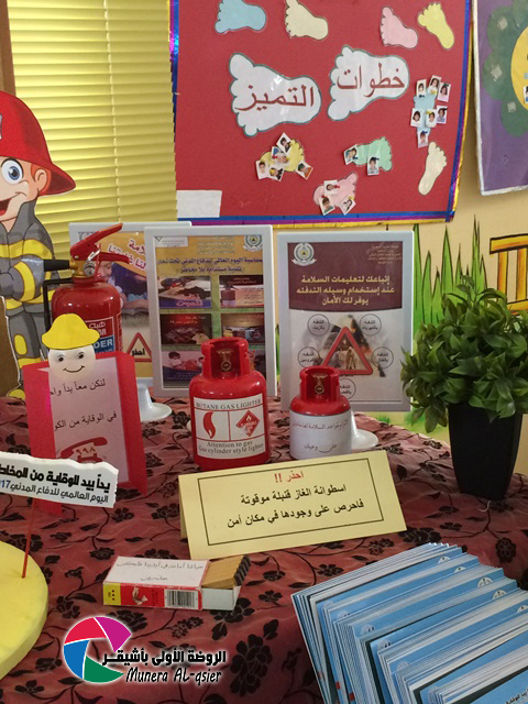 التي أعدت ركنا توعويا متميزا احتوى على نشرات ومطويات تعريفية بالدفاع المدني ومهامه وكل ما يخص الأمن والسلامة كما اشتمل على توزيعات ومطويات قدمت من منسوبات الروضة والأطفال ..