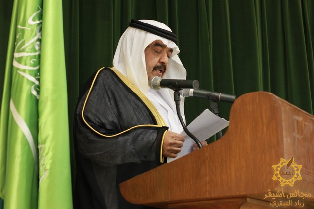 احتفلت مساء أمس الاربعاء مدينة أشيقر باليوم الوطني على شرف محافظ محافظة شقراء محمد بن سعود الهلال وبحضور رئيس مركز أشيقر عبدالله بن عبدالمحسن المغيرة والدكتور عبدالله السبيعي وكيل جامعة شقراء للشؤون التعليمية وعدد من رؤساء المراكز ومدراء الدوائر الحكومية بشقراء وأشيقر . حيث أقيم هذا الحفل بصالة الإحتفالات بمنتزه جبل أشيقر بتنظيم من أمارة أشيقر وبلدية أشيقر ومدرسة أشيقر المتوسطة والثانوية للبنين , وبدأ الحفل الذي قدمه كل من: محمد أباحسين وحمد أباحسين بالسلام الملكي السعودي ثم آيات من القرآن الكريم رتلها الطالب/أسامة أباحسين بعدها ألقى رئيس مركز أشيقر كلمته بهذه المناسبة الذي هنأ فيها خادم الحرمين الشريفين الملك عبدالله بن عبدالعزيز وسمو ولي عهده الأمين الأمير سلمان بن عبدالعزيز وسمو ولي ولي العهد الأمير مقرن بن عبدالعزيز -حفظهم الله- وفي نهاية كلمته قدم شكره للداعمين والمنظمين . بعدها عرض أوبريت إنجاز بل إعجاز تلاها العرضة السعودية الذي شارك فيها محافظ شقراء والضيوف . وقد تزامن مع هذا الحفل مسرح للطفل أقيم على المسطحات الخضراء بمشاركة وفرحة من الجميع .