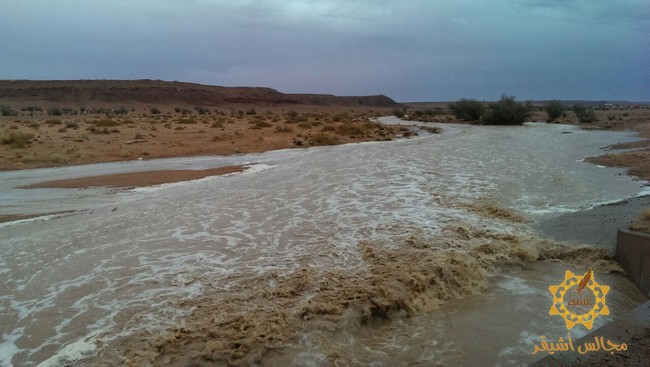 أمطار الاثنين 2/2 , جريان جميع الشعبان وامتلاء سد المنحنى