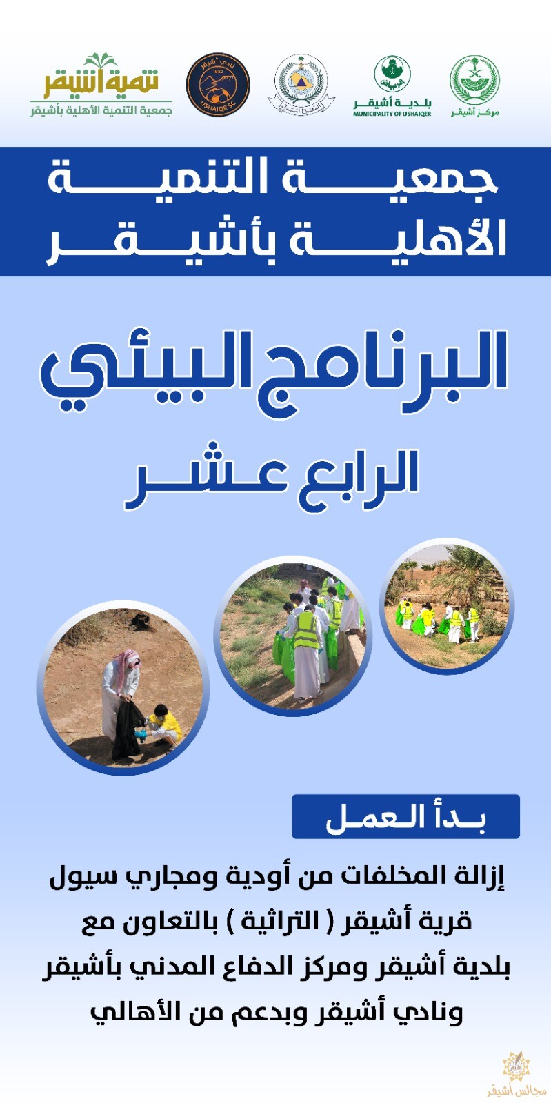 إزالة المخلفات من أودية ومجاري سيول القرية التراثية بأشيقر هو البرنامج البيئي الرابع عشر