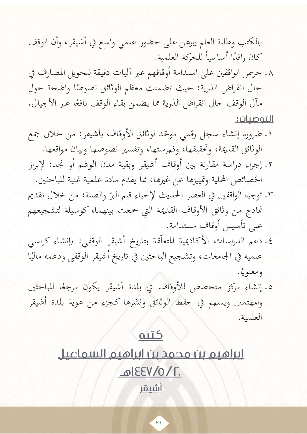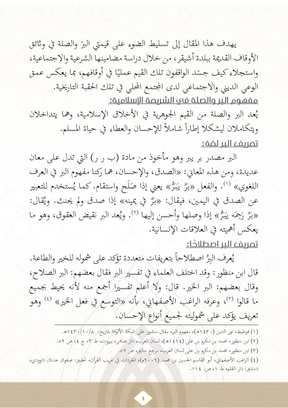 الرئيسية/الاخبار/مقالات/البر والصلة في وثائق الأوقاف بأشيقر مقالات البر والصلة في وثائق الأوقاف بأشيقر ضمن سلسلة أوقاف أشيقر adminمنذ ساعتين 121 أقل من دقيقة adminمنذ ساعتين 121 أقل من دقيقة