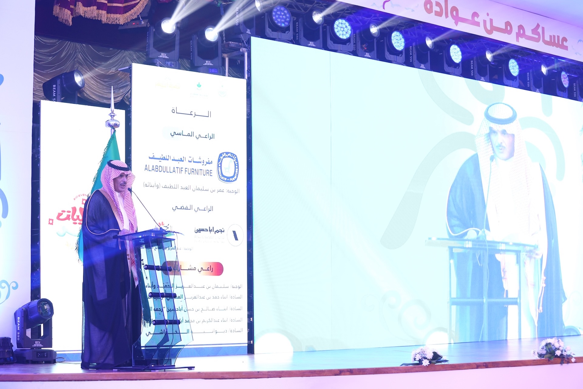 استُهل الحفل بالسلام الملكي، ثم تلاوة عطرة من القرآن الكريم قدمها الطالب عبدالعزيز بن فهد الحسيني (أحد طلاب جمعية تعليم القرآن الكريم وعلومه بأشيقر) . وفي كلمة بهذه المناسبة، رفع رئيس مركز أشيقر، أسمى آيات التهاني والتبريكات بمناسبة العيد السعيد لمقام خادم الحرمين الشريفين وسمو ولي عهده الأمين – حفظهما الله – وللشعب السعودي كافة، سائلاً المولى أن يديم على الوطن أمنه وعزه.