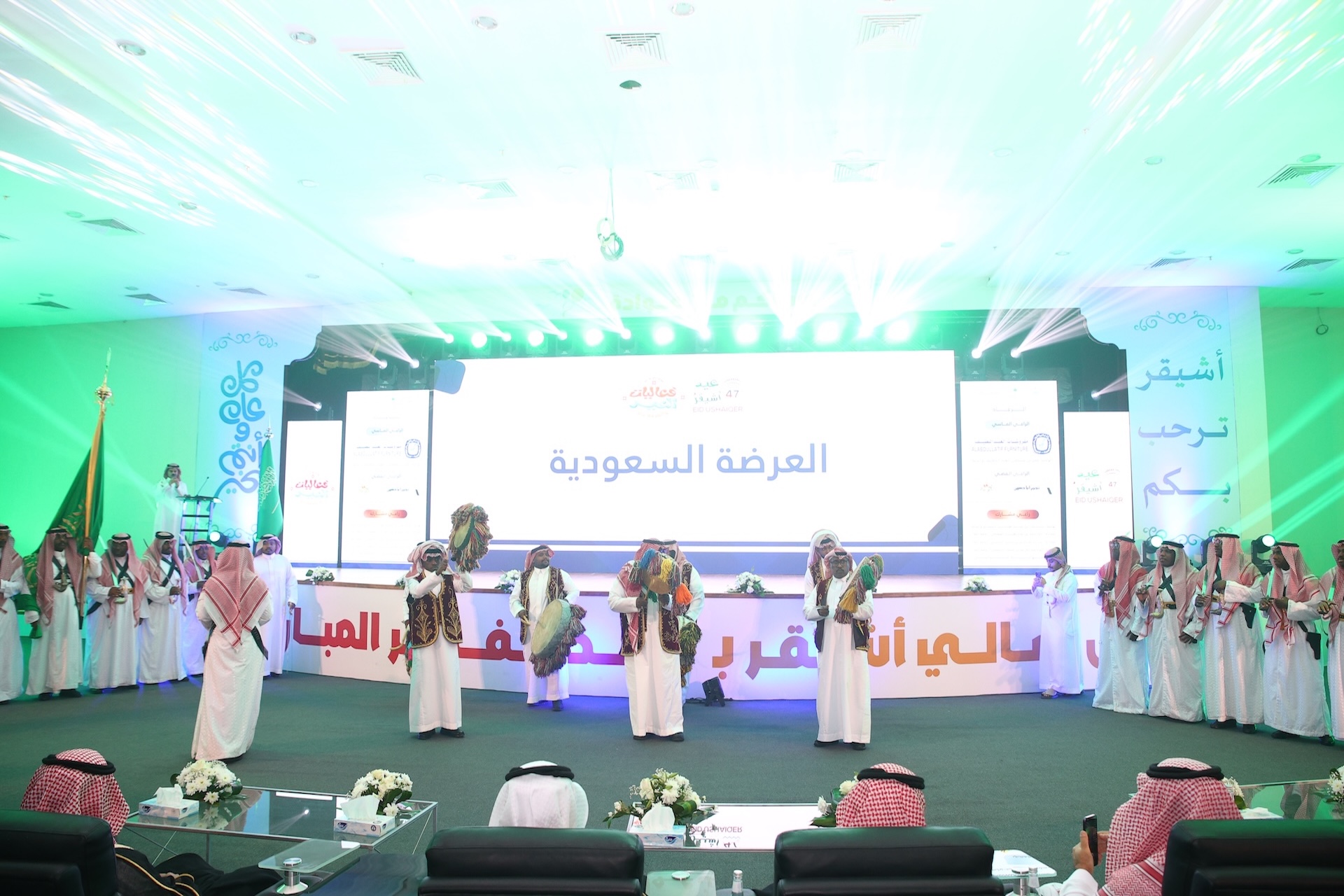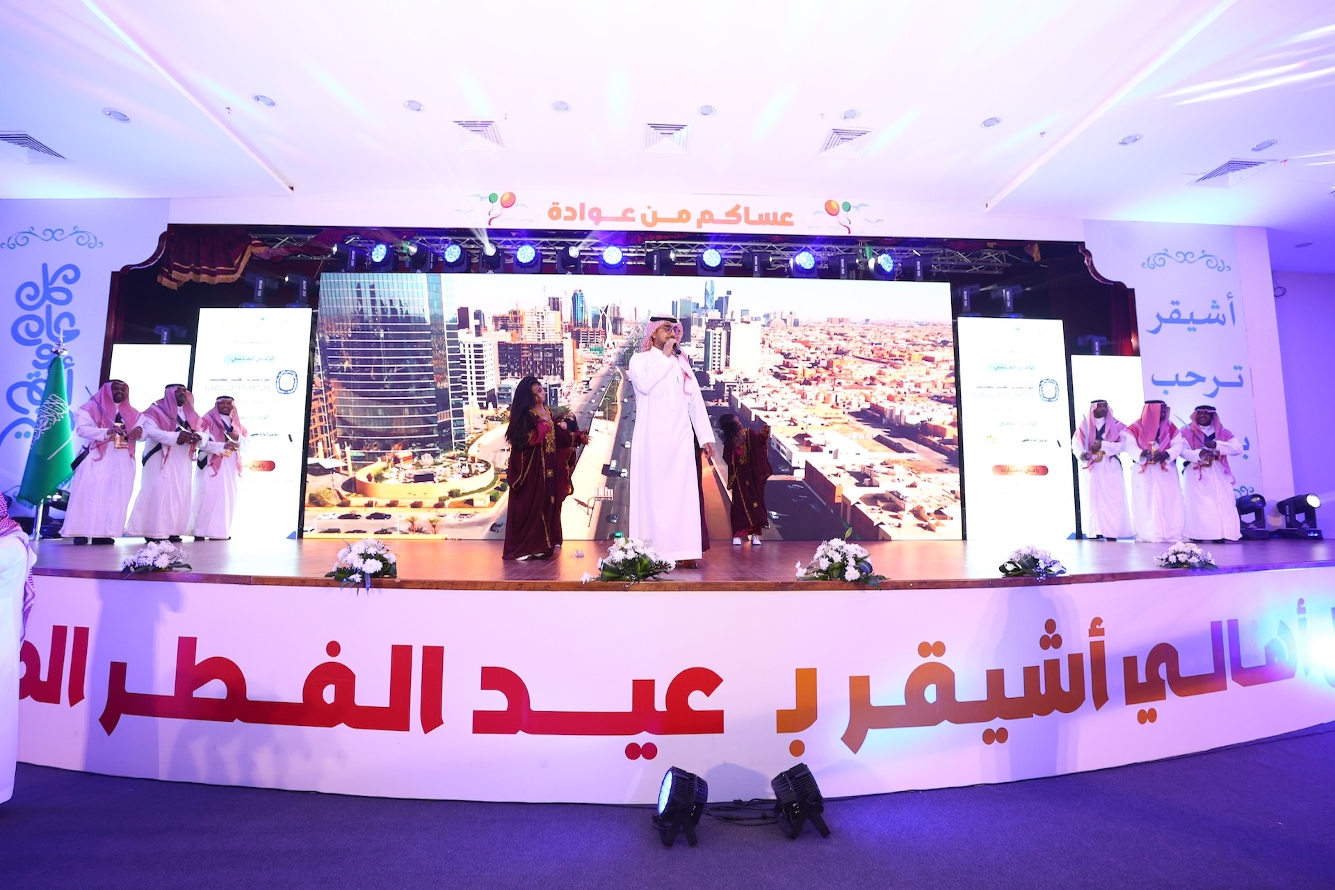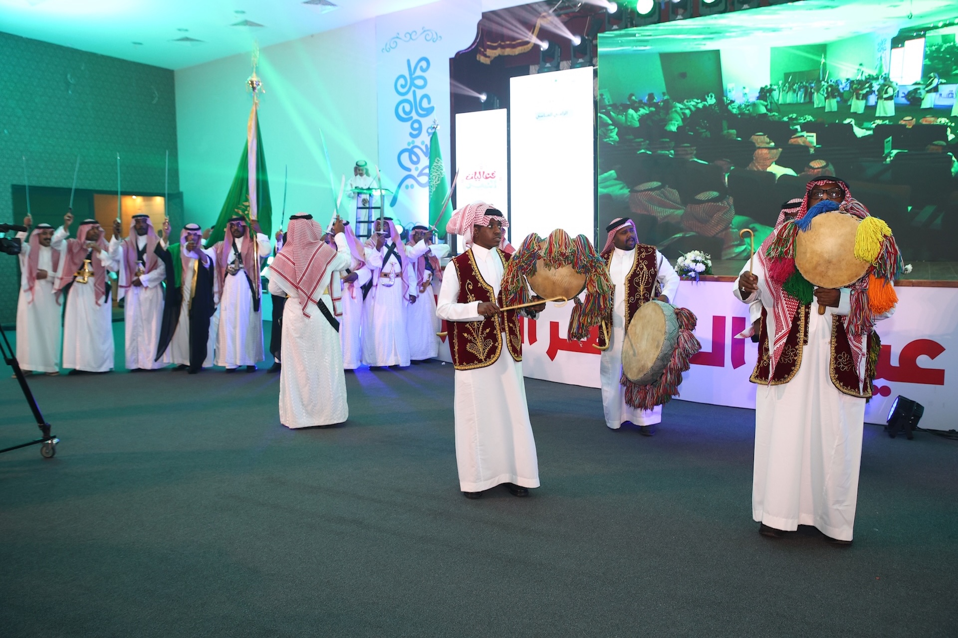 ثم “العرضة السعودية” ، قبل أن يتناول الحضور وجبة العشاء، لينتهي الحفل بألوان من الفلكلور الشعبي (السامري) التي استمرت حتى ساعات متأخرة وسط بهجة الجميع.