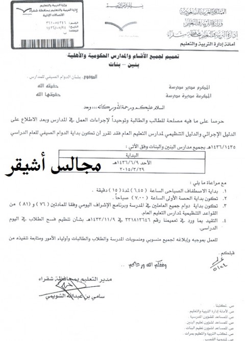 تعليم شقراء يحدد بداية الدوام الصيفي
